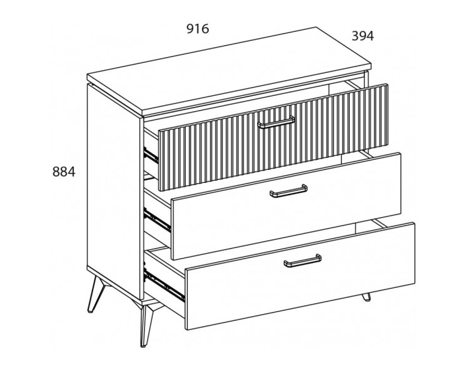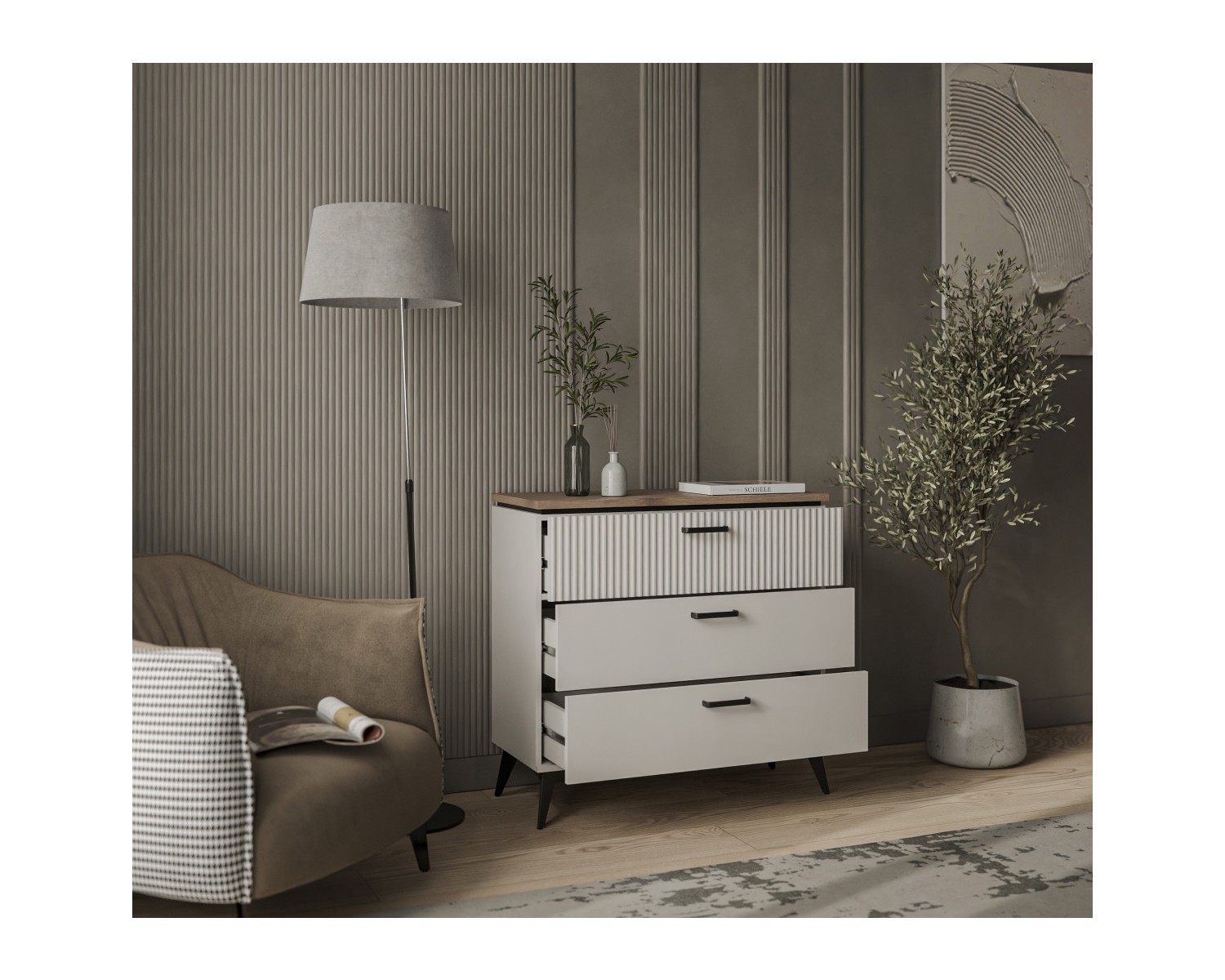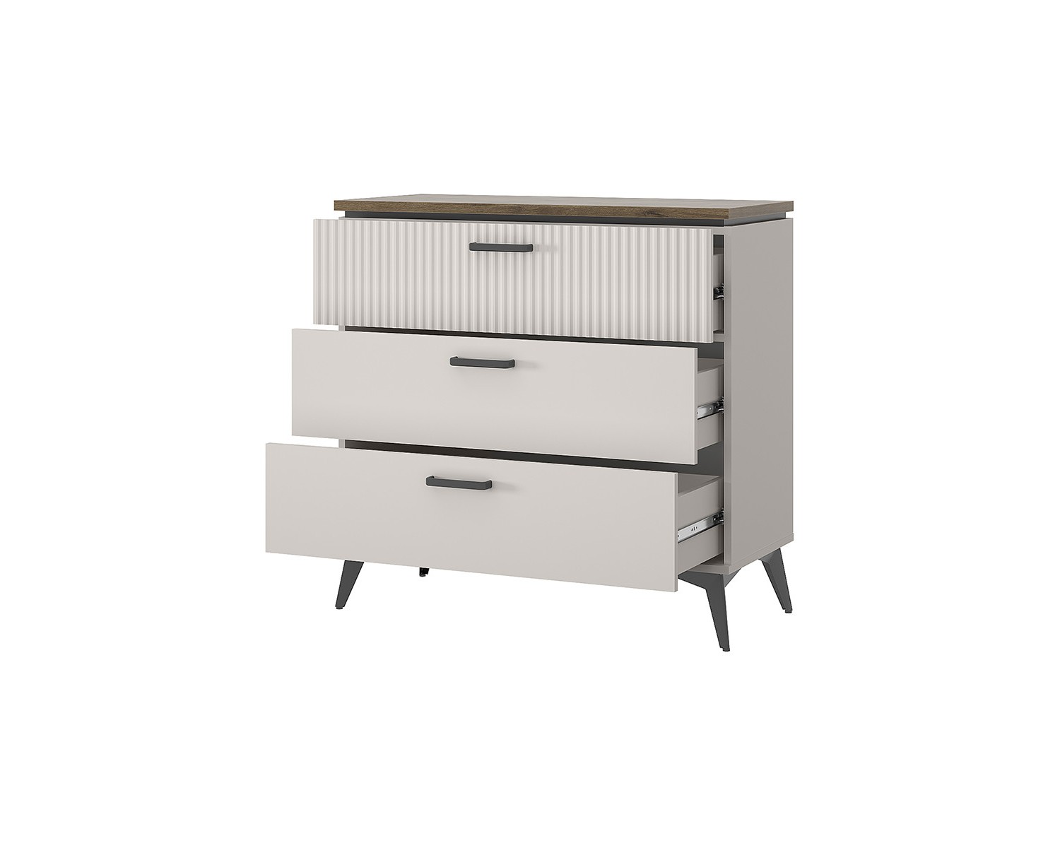 Комод 3S – это не только необходимый предмет мебели, но и украшение любой комнаты, которое способно преобразить интерьер. Конструкция комода 3S VINATI прямая, представляет собой три выдвижных ящика, расположенных друг над другом (3S).