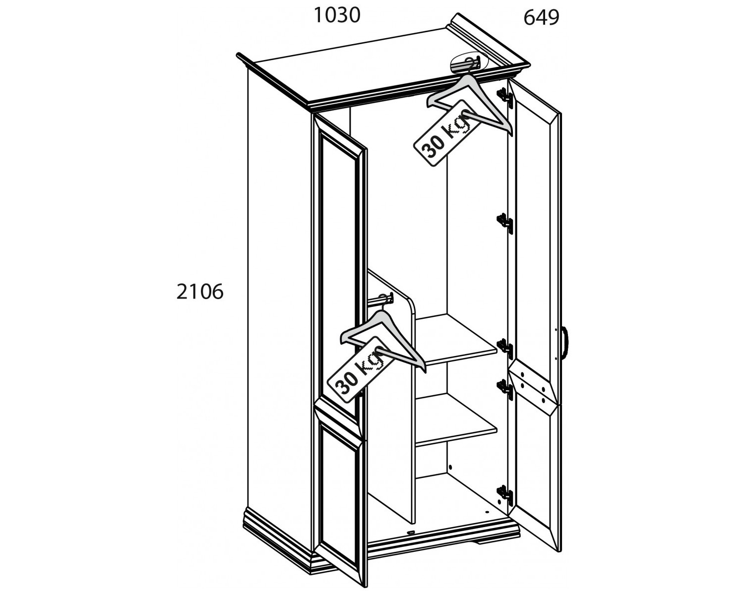 Габариты 1030х2106х649