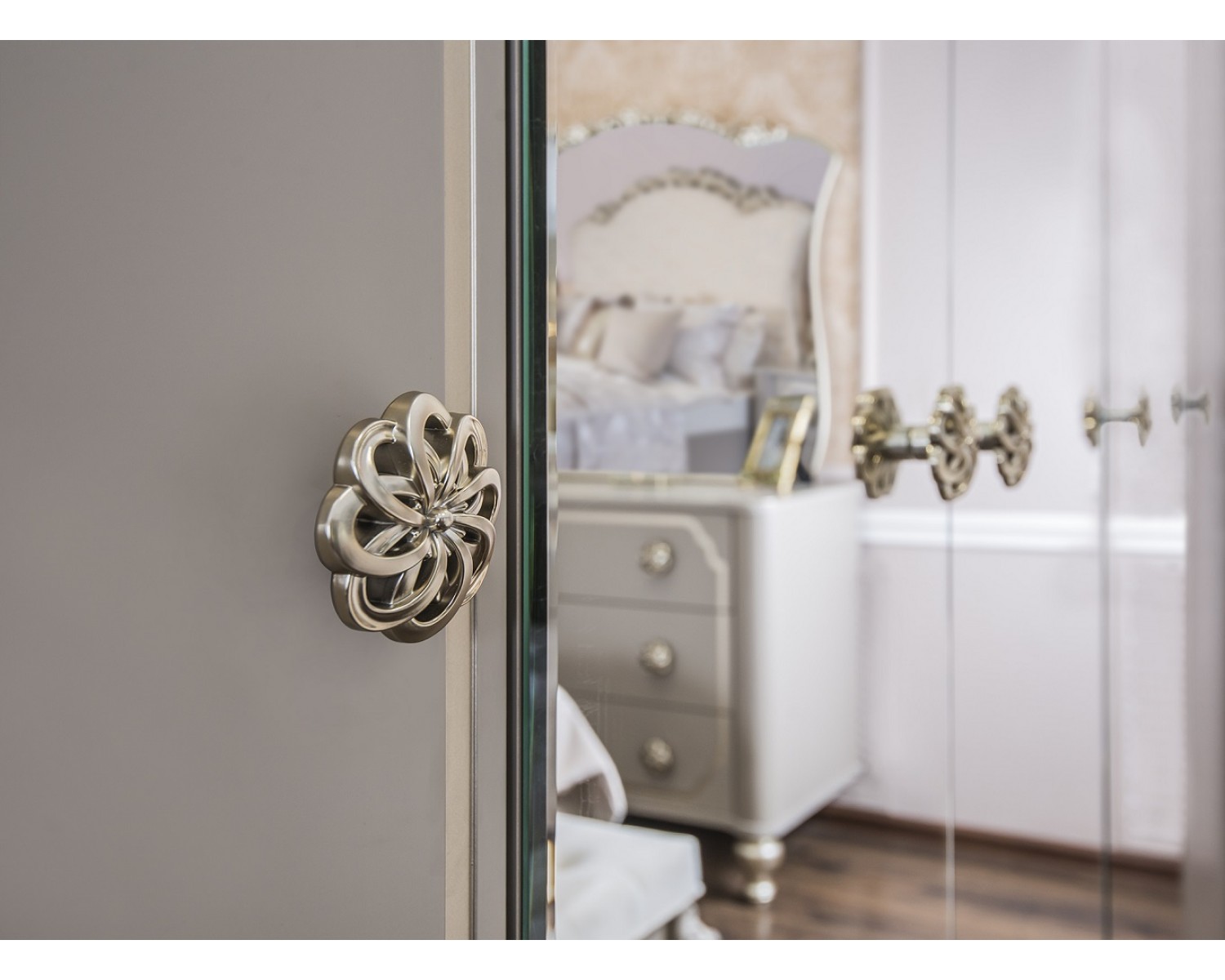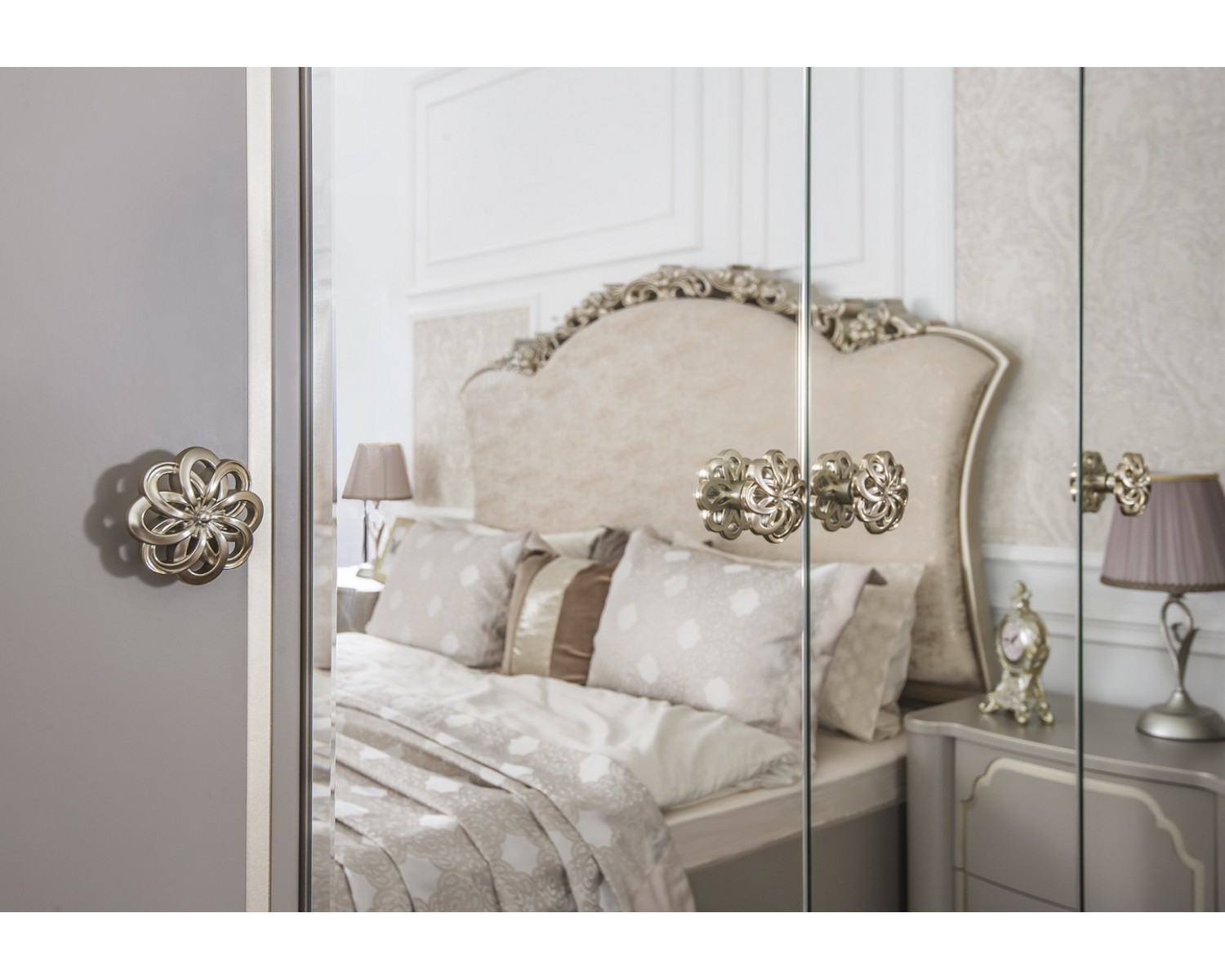 Коллекция Лали выполнена из надёжных экологичных материалов и задекорирована с применением высоких технологий мебельного производства — фасады МДФ с художественной фрезеровкой покрытой поталью цвета Шампань — это тренд мебельного сезона так же, как и итальянская матовая эмаль Серый камень — это универсальные решения, которые украсят интерьер вашей спальни.