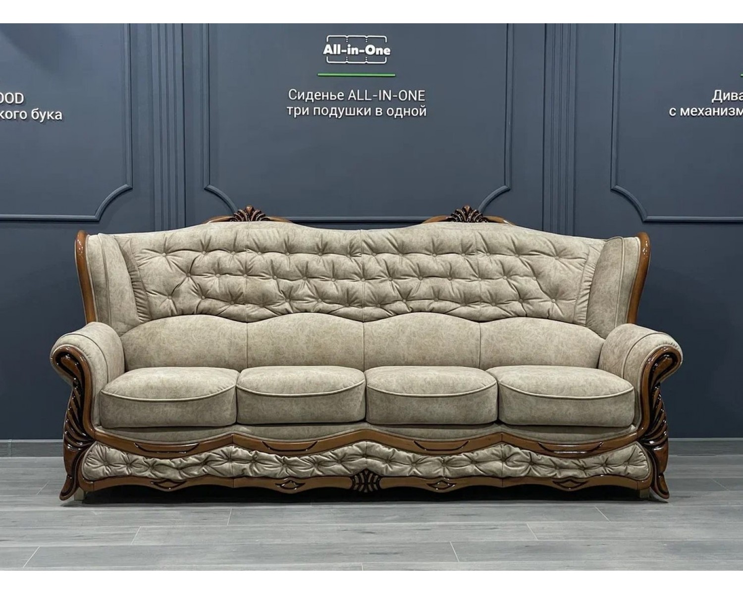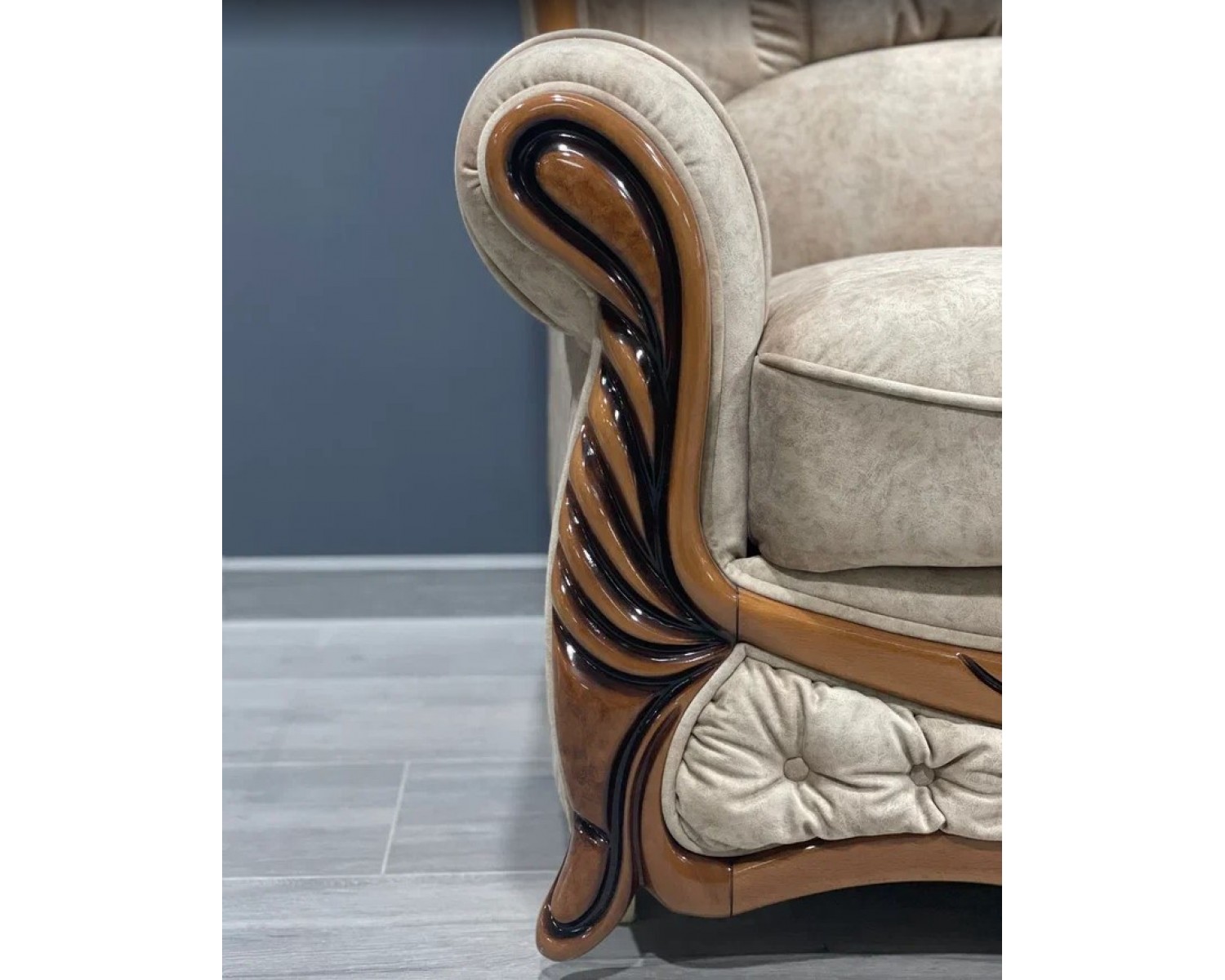 Каркас мягкой мебели выполнен из натурального бука, который отличается особенным рисунком дерева. Кроме того, Вы можете выбрать один из наиболее предпочтительных вариантов его окрашивания : дуб, вишня, сосна, грецкий орех и махагон. Окрашивание производится только экологически чистыми итальянскими лаками, каждая деталь прокрашивается отдельно и очень тщательно. Можно заказать как сдержанное матовое покрытие, так и яркое высокоглянцевое.