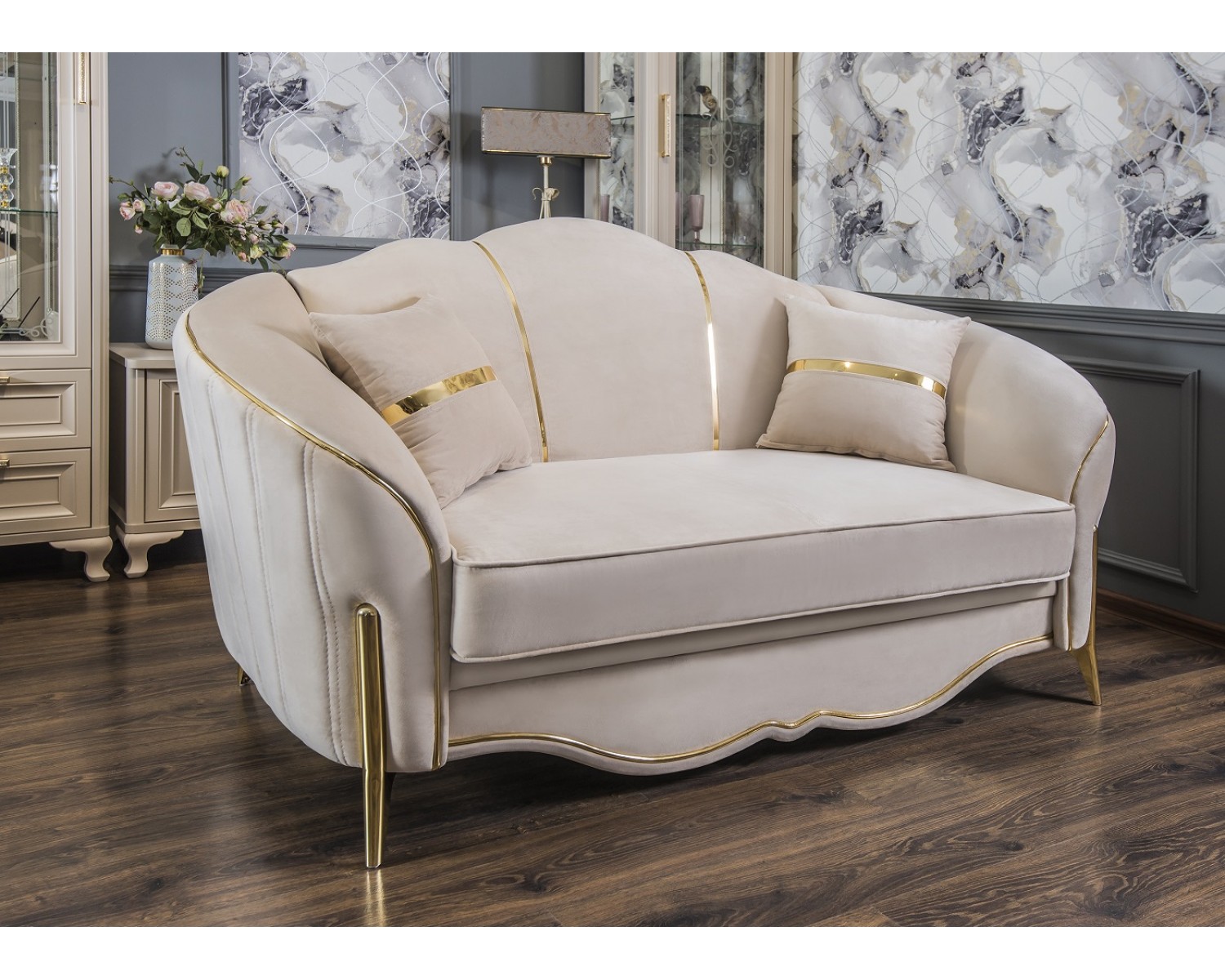 Диван Лара 2х местный, бежевый золото без раскладного механизма