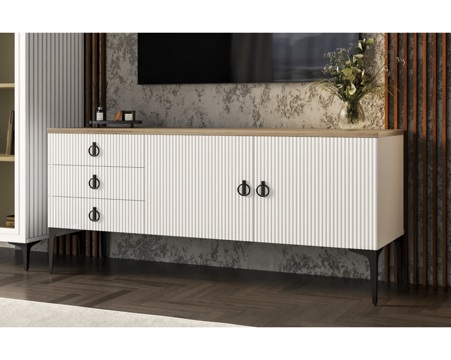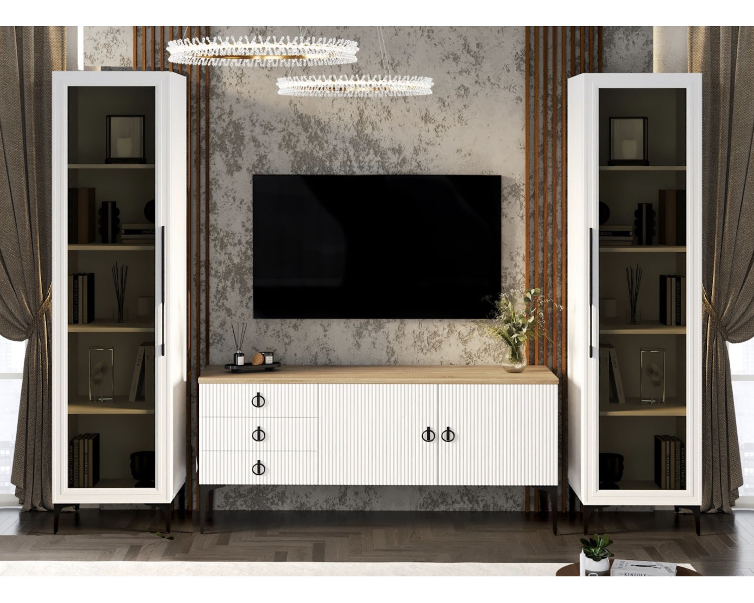 Гостиная «Стелла 1+ТВ+1» в белом цвете в стиле лофт — современное и стильное решение для любого интерьера. Функциональные модули дают максимум места для хранения и комфортного размещения техники, а лаконичный дизайн создаёт атмосферу уюта и легкости.