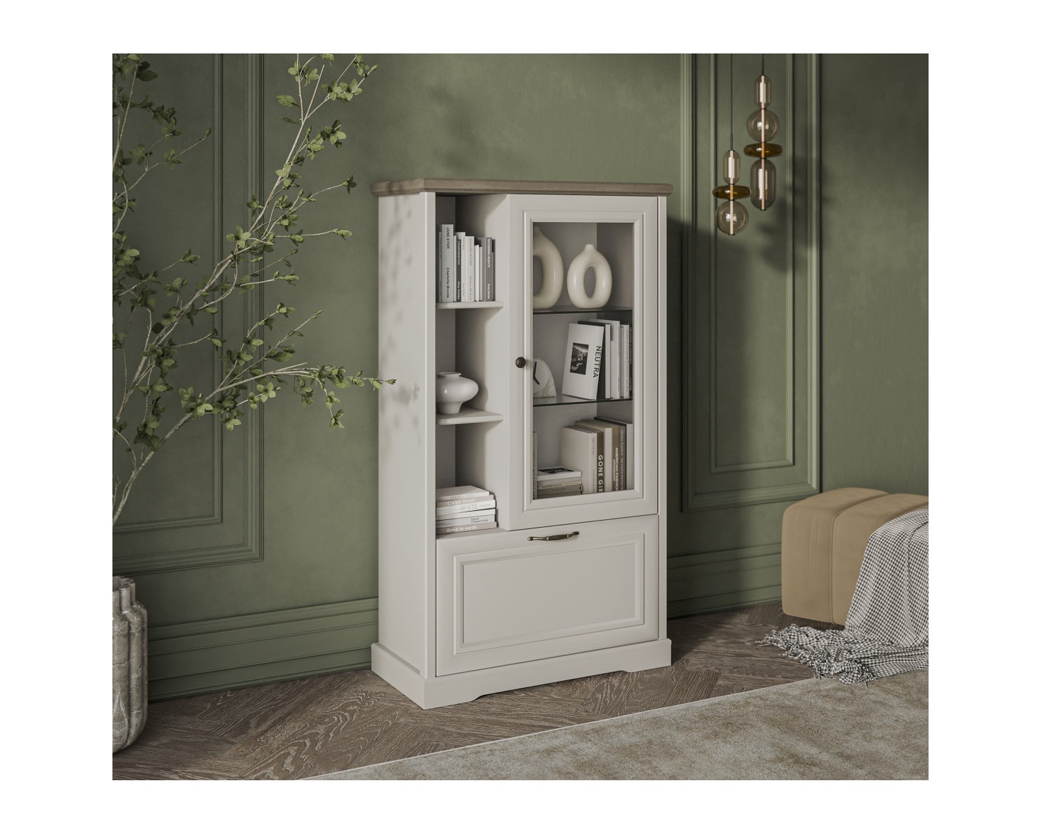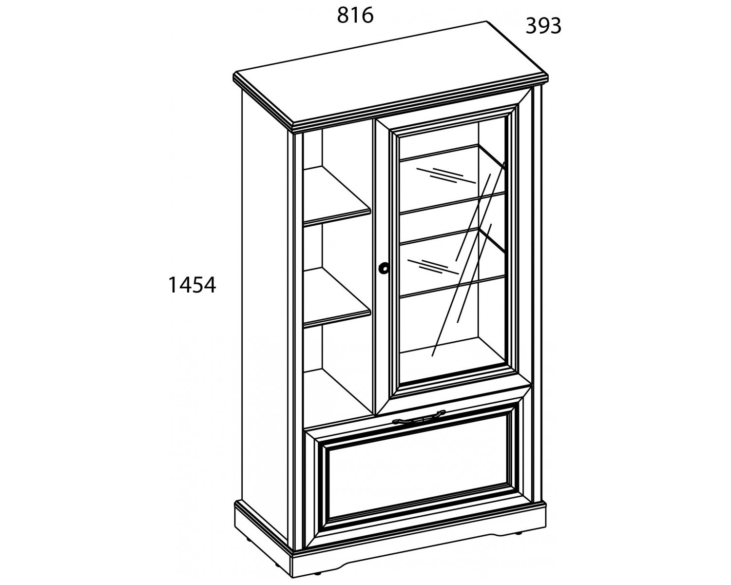 TOSCANA NEW, Шкаф с витриной 1V1D3N. Цвет ПЕРСИДСКИЙ ЖЕМЧУГ/КАНЬОН 816х1454х393 - 1шт