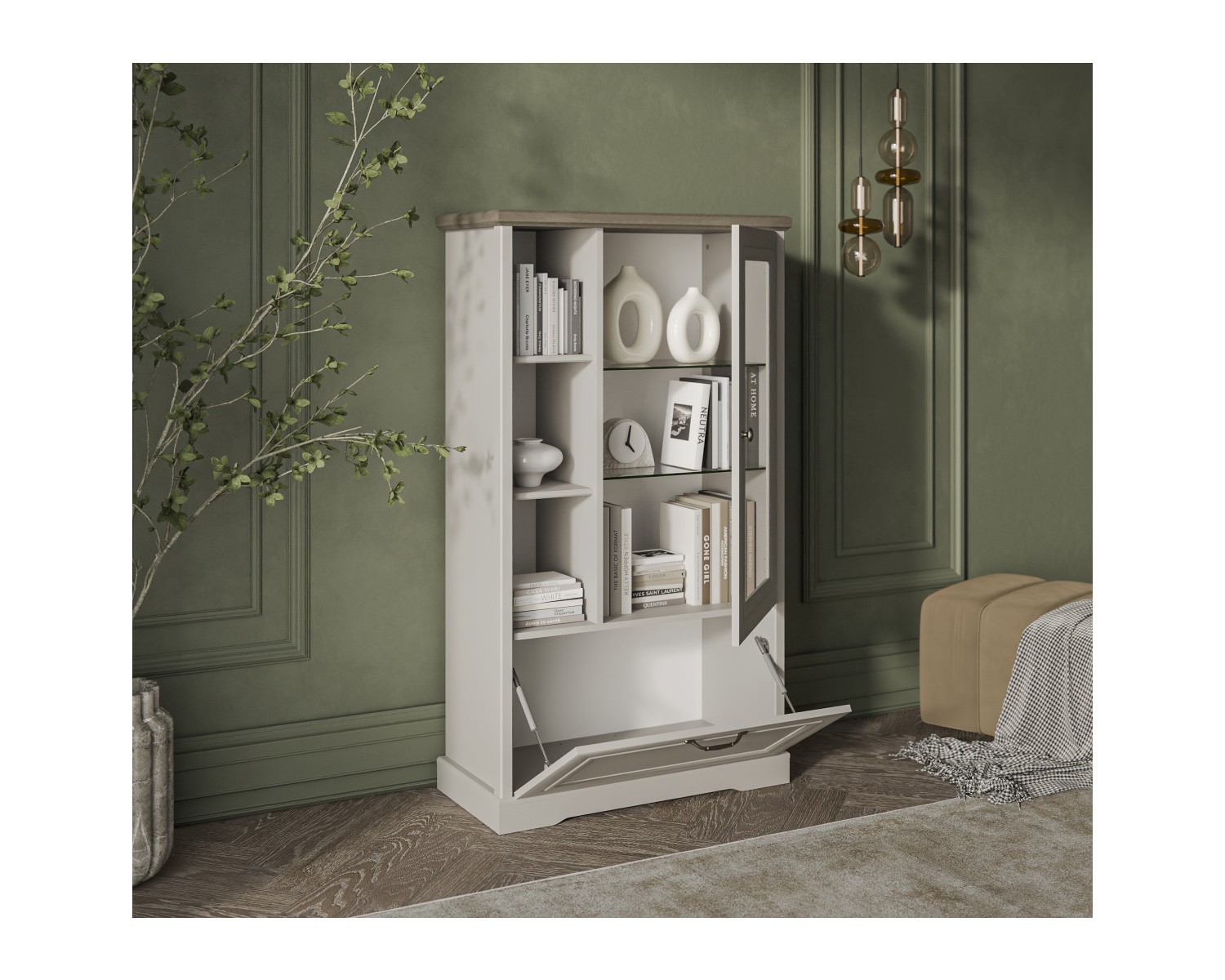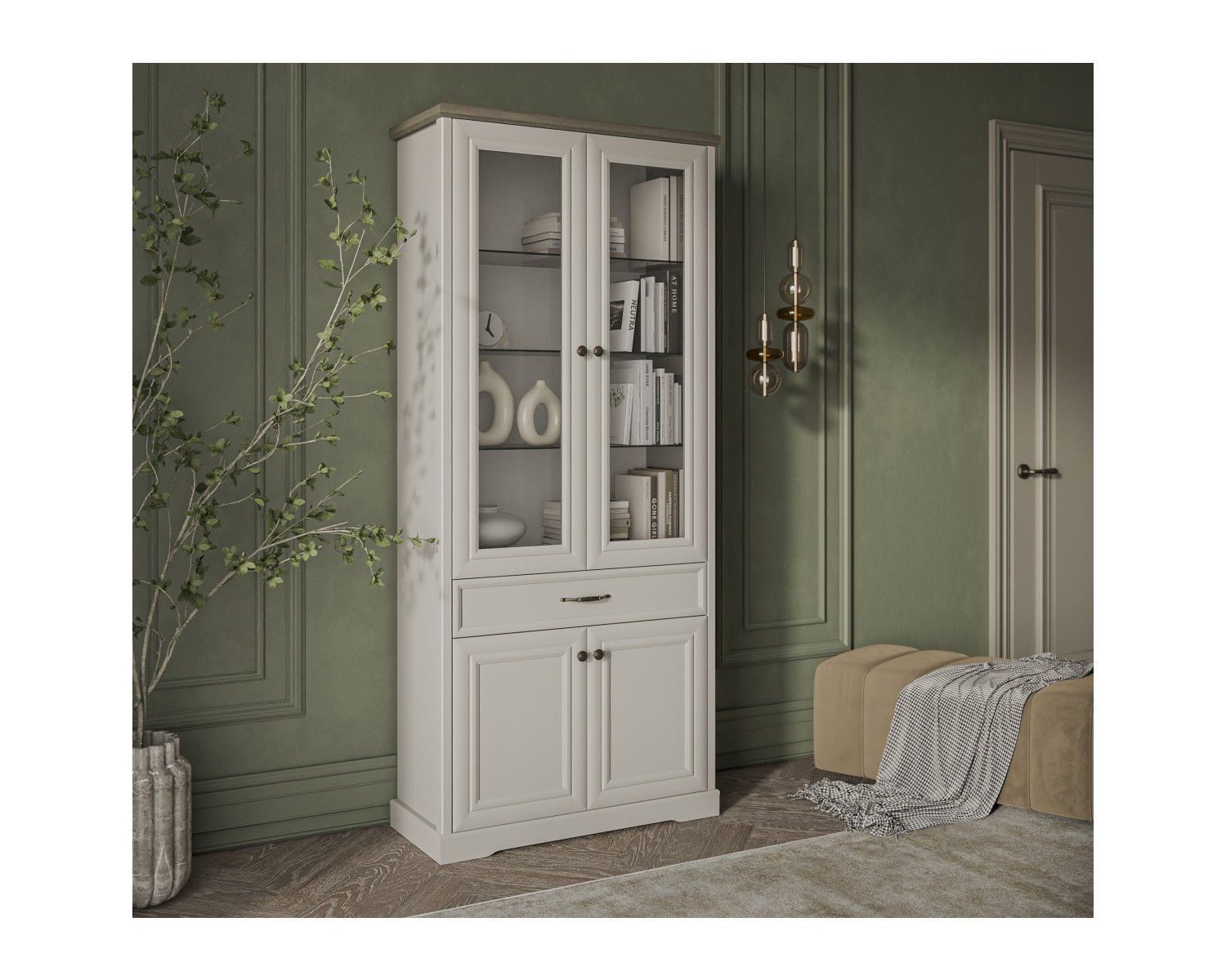 TOSCANA NEW, Шкаф с витриной 2V2D1S. Цвет ПЕРСИДСКИЙ ЖЕМЧУГ/КАНЬОН 938х2109х393 - 1шт