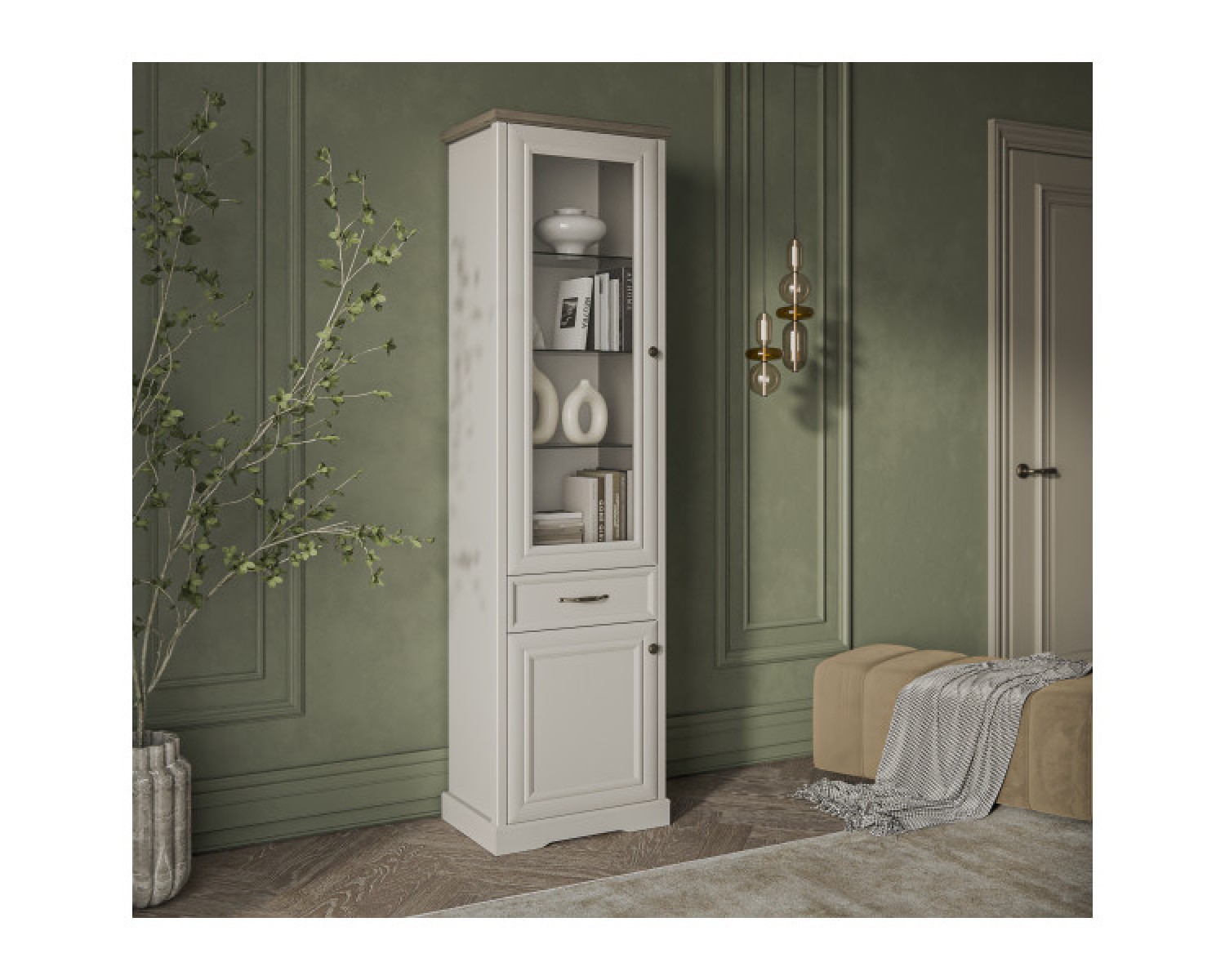 TOSCANA NEW, Шкаф с витриной 1V1D1S. Цвет ПЕРСИДСКИЙ ЖЕМЧУГ/КАНЬОН 588х2109х393 - 1шт