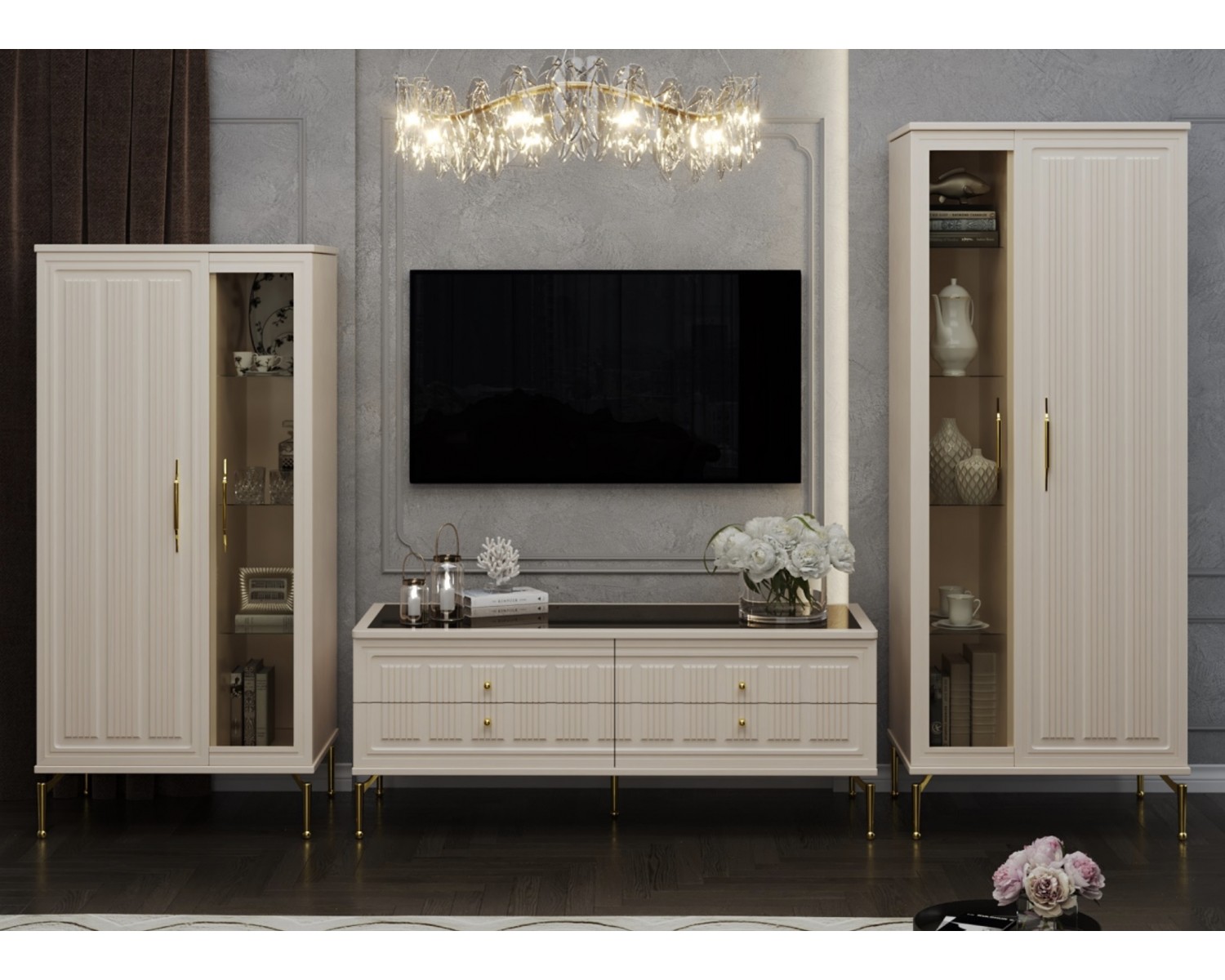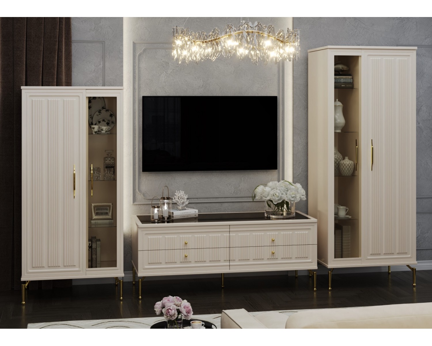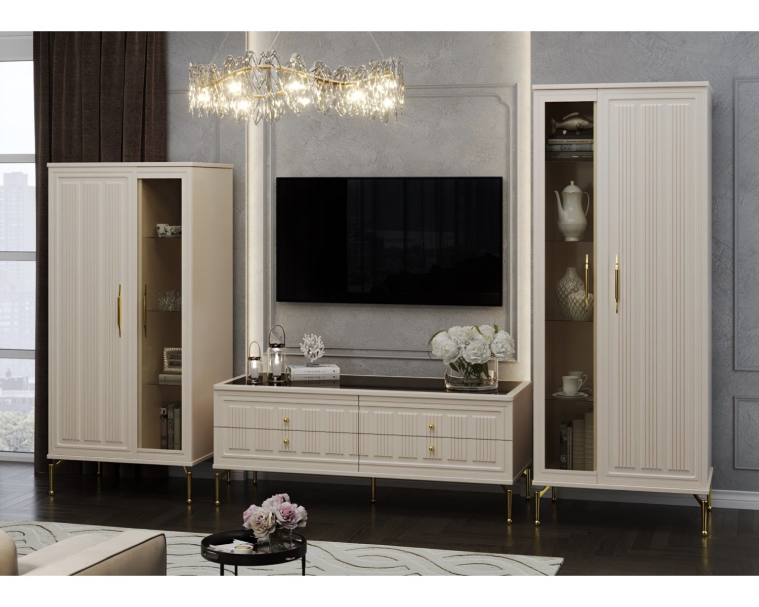 Стильная и функциональная гостиная «Замира» в нежном бежевом оттенке — идеальное решение для создания уютного и эрганомичного пространства. Этот модульный гарнитур включает все необходимое для современной гостиной:
