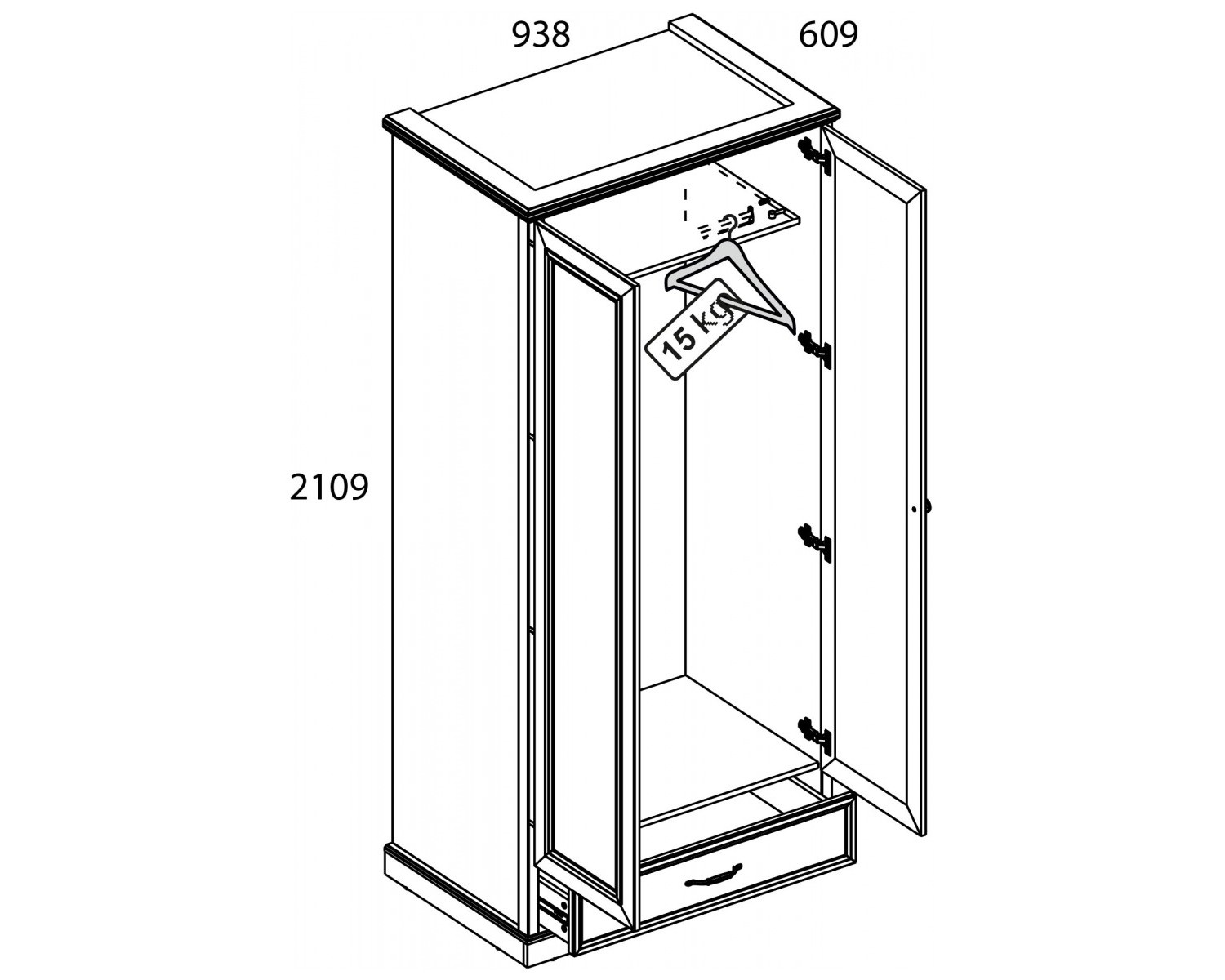Габариты 938х2109х609