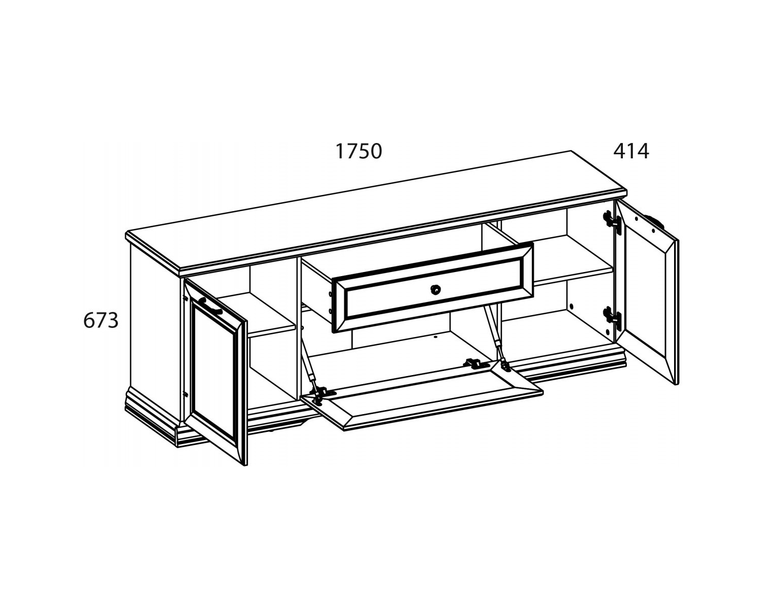 Тумба RTV 3D1S SEVILLA. Позволит разместить на верхнем щите не только габаритную ТВ-технику, но и большое количество вещей в предусмотренных отделениях элемента. Тумба имеет большой параметр ширины, что даёт устойчивость для установленной техники. Конструкция тумбы RTV 3D1S прямая, представляет собой два отделения с полками ЛДСП за двумя глухими дверями, одно отделение за откидной дверью, один выдвижной ящик (1S). Две двери распашные, крепятся на петли к боковому корпусу изделия, одна дверь откидная, крепится посредством петель и газлифтов.