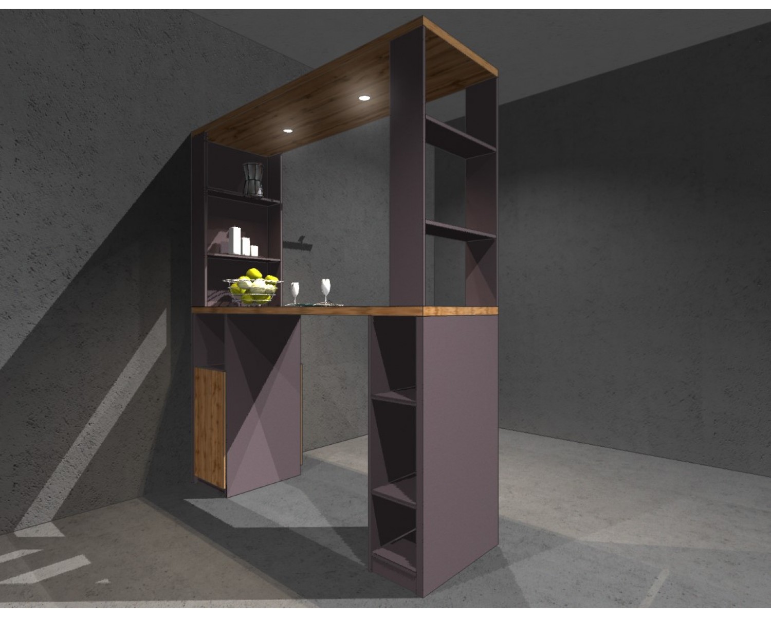 Фурнитура: эксцентриковые стяжки (неограниченное количество сборок и разборок), подвеска для бокалов- хром, пуш толкатель, подсветка.