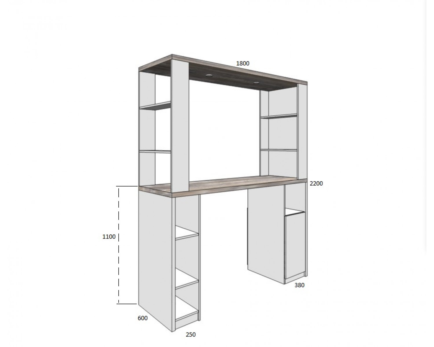 Размер: Высота 2200 мм. Ширина 1800 мм. Глубина 600 мм. (высота столешницы 1100 мм)