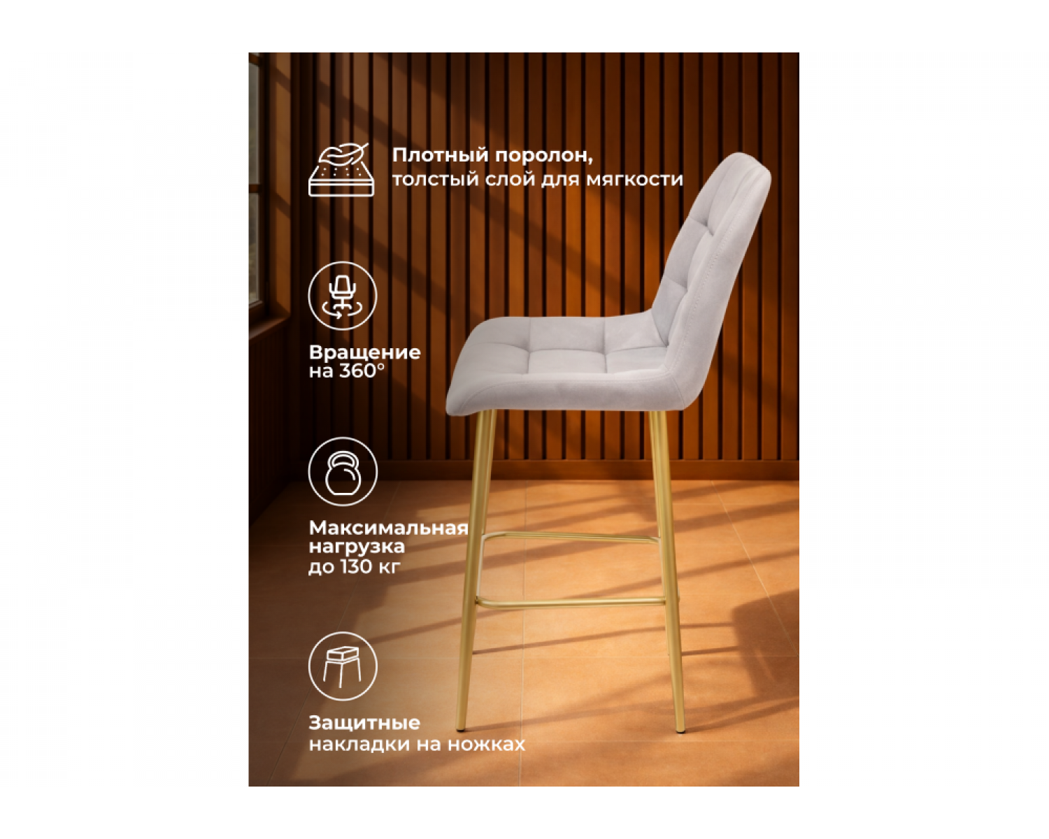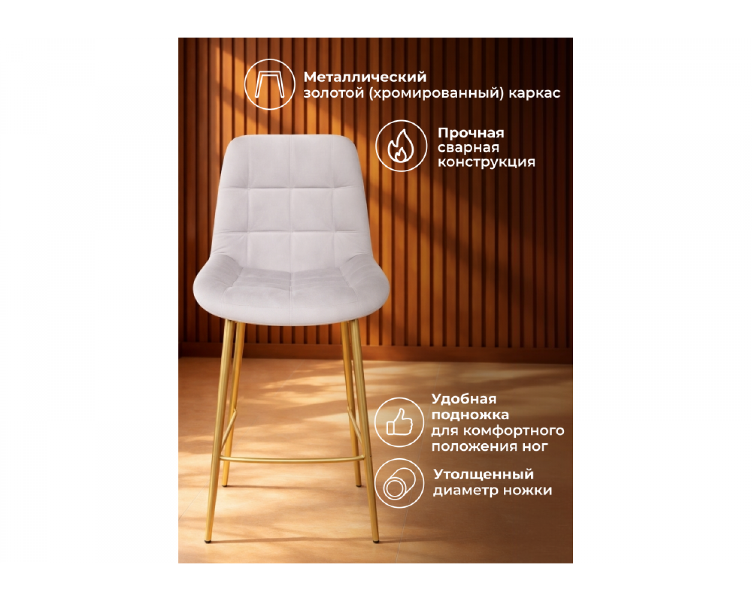 Полубарный стул Челси 360 светло-серый (zd 960) / золотой идеально впишется в любой интерьер, украшая повседневную жизнь. Уникальный дизайн и трендовый цвет создаст ощущение уюта и тепла в любом помещении.