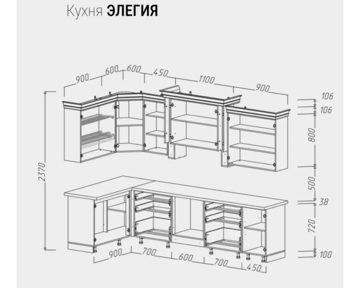 Карниз для модуля пенал имеет фиксированный размер.Боковые торцевые карнизы также имеют фиксированный размер. Карнизы для прямых шкафных групп - имеют дополнительные вылеты, поэтому при необходимости могут подвергаться запилу во время сборки. Между собой детали карниза соединяются прозрачным клеем во время установки.