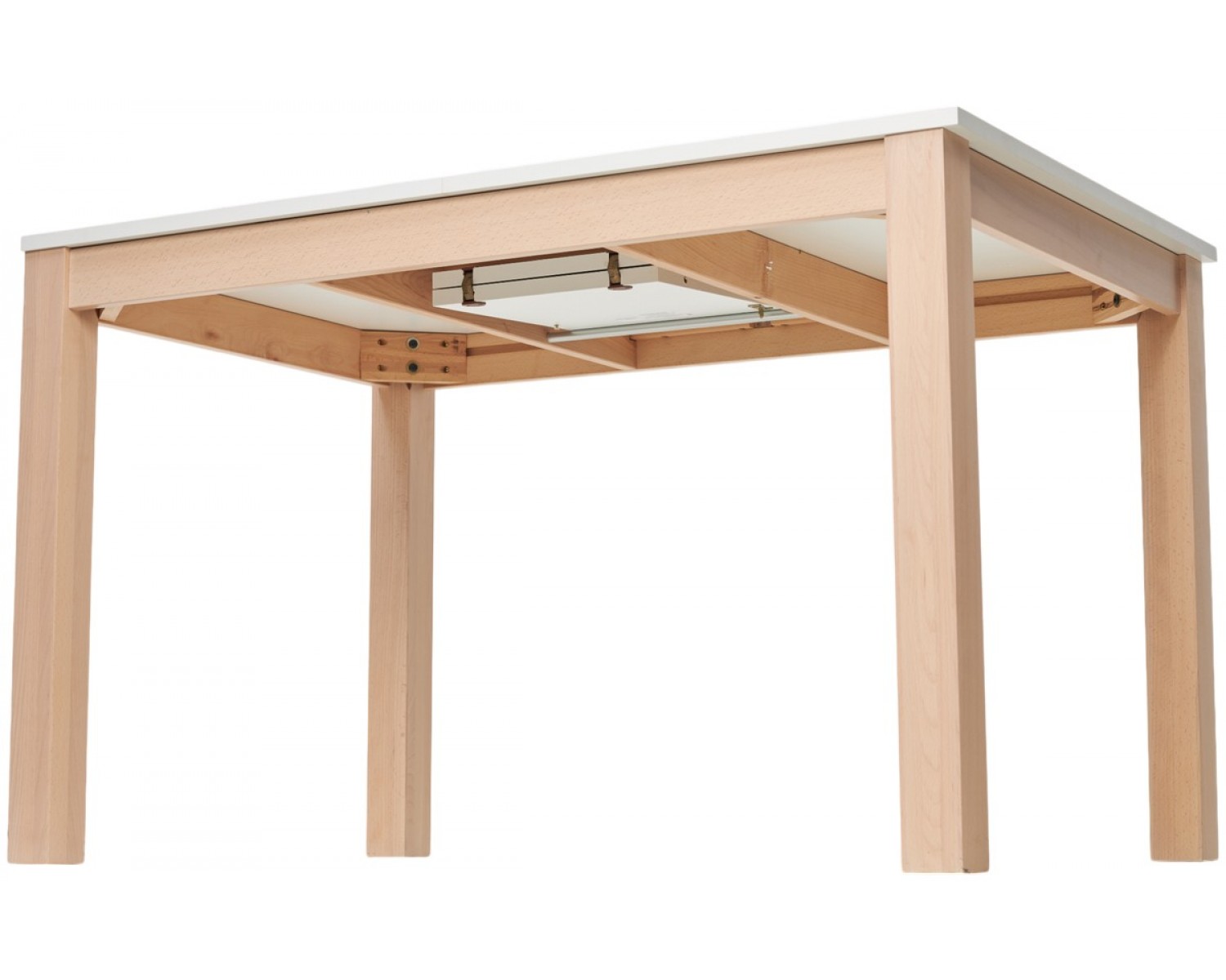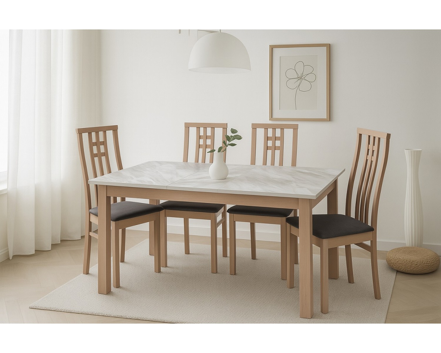 Ножки стола выполнены из массива бука, столешница - мдф ламинированный. Раскладной. Вставка "бабочка" в центре столешницы. Посадочных мест - 6.