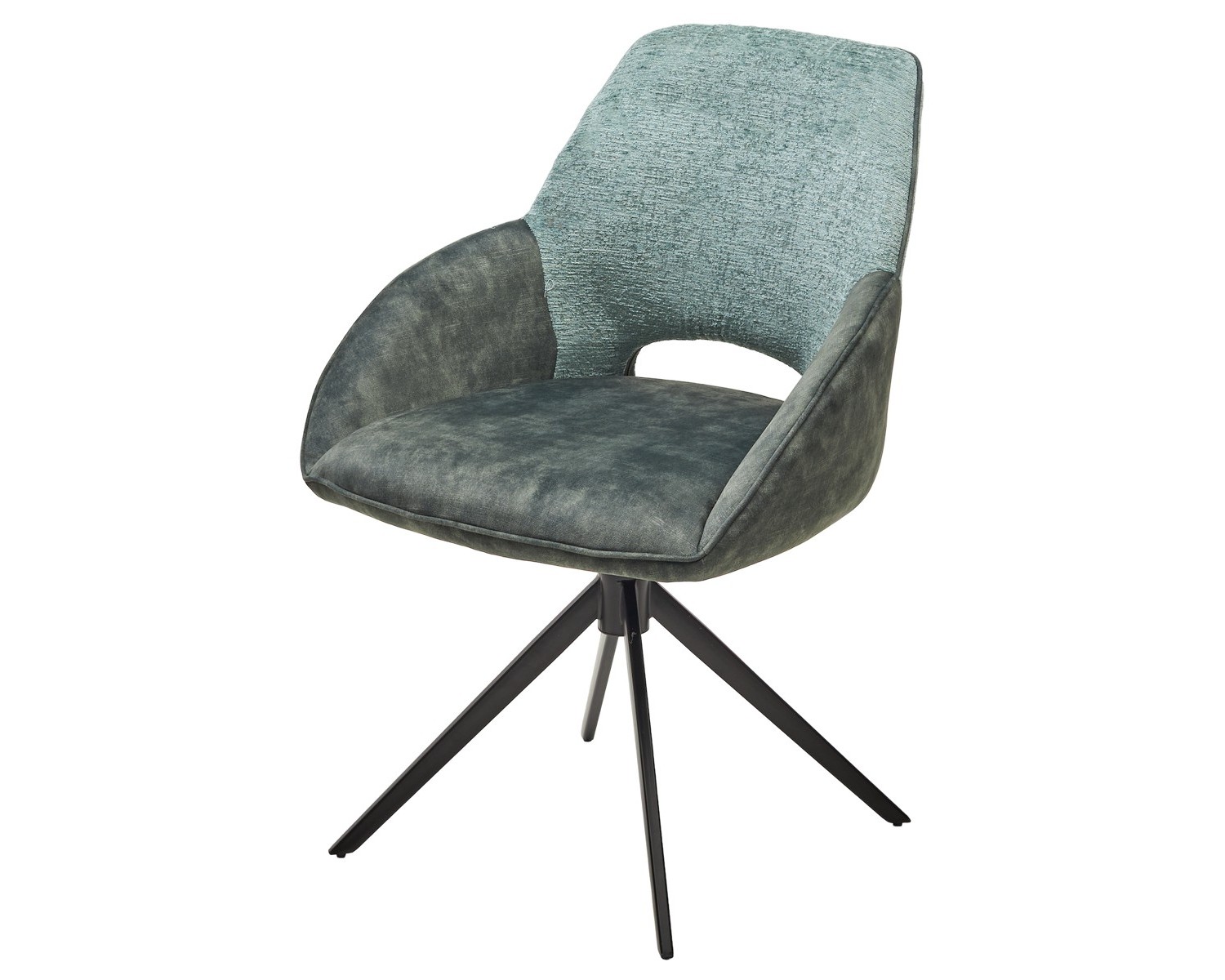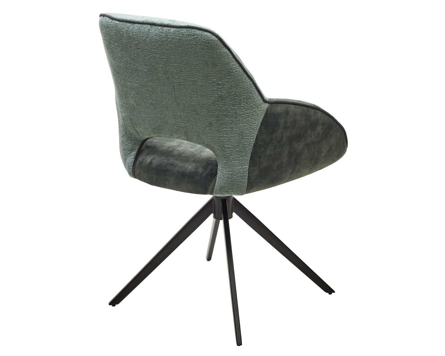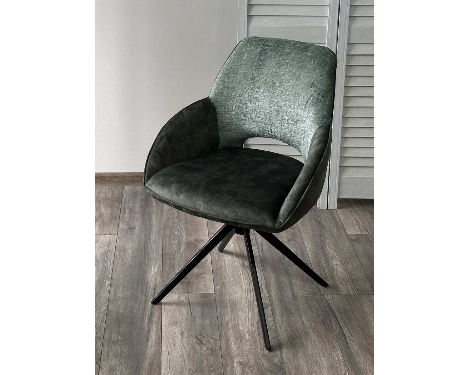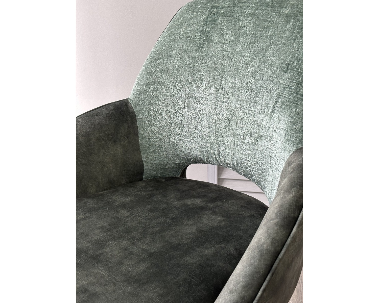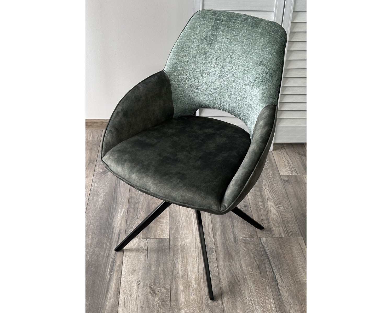 Обивка спинки - фактурный велюр зеленого цвета, сиденья - велюр темно-зеленого цвета.