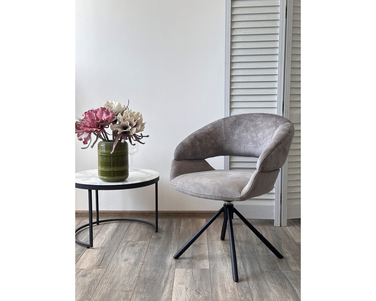 Стул EMBER 360 град. поворот. 7525-180 Серый, велюр/ ENJOY-451 Серый, ткань/ Черный, ®DISAUR в Набережных Челнах