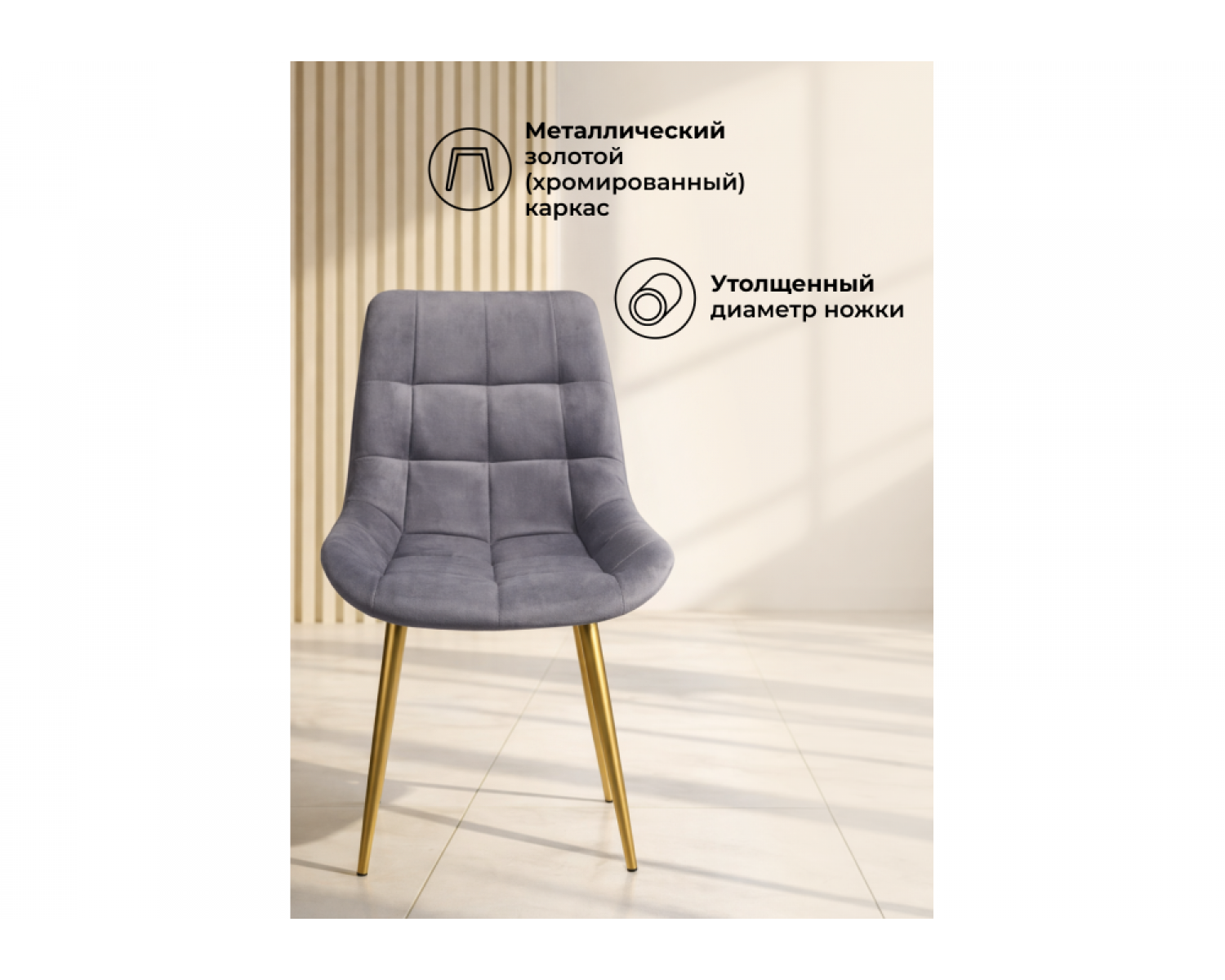 Стул на металлокаркасе Челси К темно-серый (zd 995) / золотой идеально впишется в любой интерьер, украшая повседневную жизнь. Уникальный дизайн и трендовый цвет создаст ощущение уюта и тепла в любом помещении.